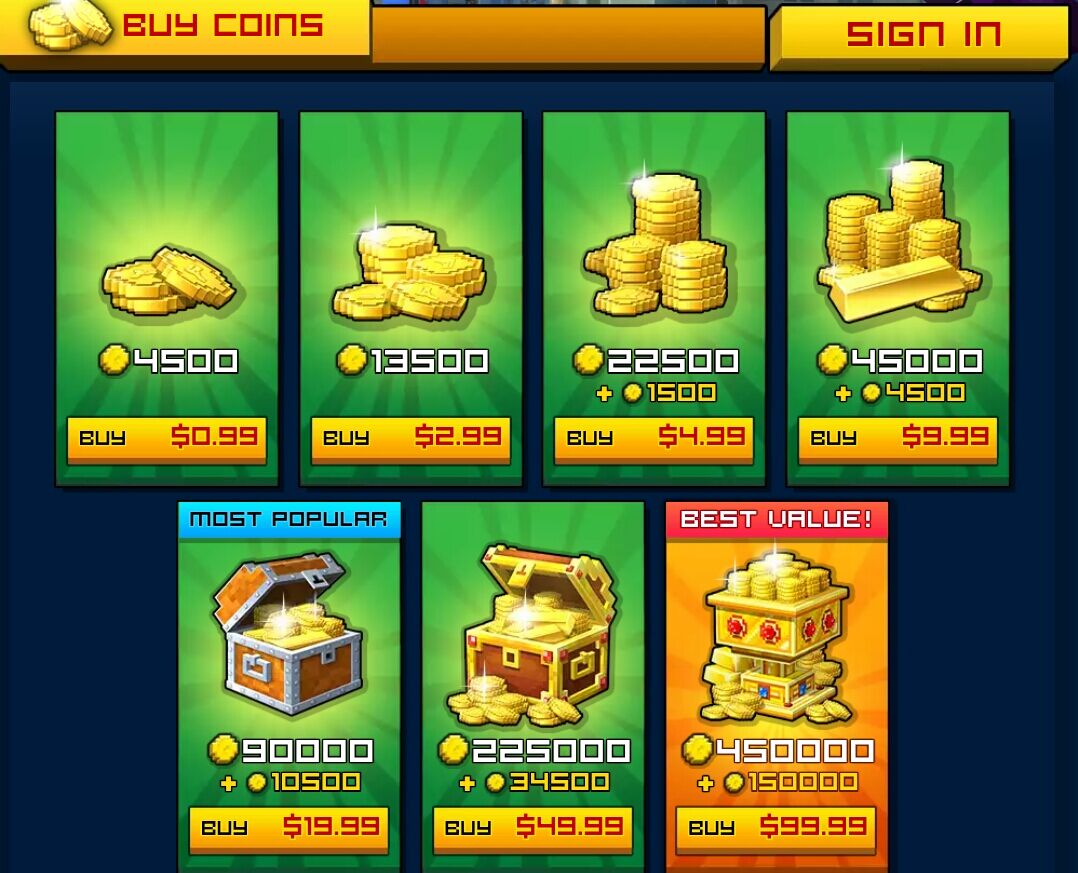 pixel gun club coin price